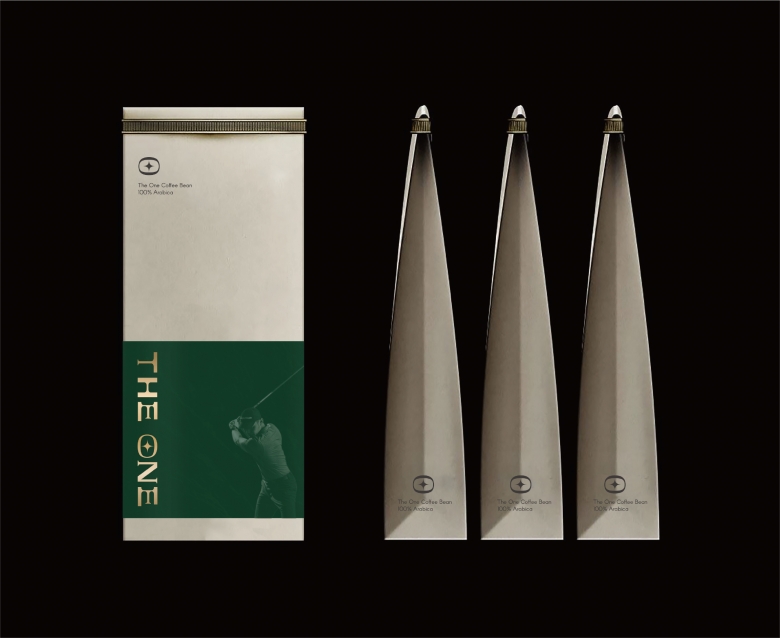 LIN COFFEE was firstly established in Tainan, starting off there, it has been extending its journey till Kaohsiung and Taichung. With the spirit of initial fascination for coffee, now it decides to share the best coffee with more people it encounters along the way. LIN COFFEE decides to focus on its business in Taichung. Taking “Royal Taste, Upgraded Quality” as the main concept, LIN COFFEE decided to bring out the new brand THE ONE. THE ONE symbolizes the European exquisite coffee culture, integrating with particular features of golf and high-end pet products. The whole Visual Identity System is rebranded, from brand naming, font design, color choices, to merchandise, leading to the new journey towards the best coffee experience. The brand naming: THE ONE- The Good One, brings out two essential elements of the brand. “THE” means the only and the limited edition; Thus, no matter it’s either on the service or the coffee itself, THE ONE always offers the unique experience and high-quality. “ONE” symbolizes the coffee beans; the gift of nature that is reaped from the land, contributing to life with coffee. THE ONE persists in bringing the world’s best coffee back to Taiwan, extracting it into the one and only.Starting off from a coffee bean, the story of THE ONE begins wishing to offer wonderful experiences with a sip of each cup of coffee, with the spirit of finest service. The four-pointed star, functioning as the first impression of THE ONE’s logo, echoes with the brightest star in the sky, the Polaris. With the guidance of Polaris, symbolizing a very important person, the journey of life is led with direction. To deconstruct each alphabet of the logo: “T” symbolizes the breakthrough from the traditional form of coffee experience, bringing the elegant sip of coffee with the highest quality; “H,” with it opens up upwards and downwards, it symbolizes the door to travel through time; “E” constructed as an image of shelves, carries on the mission to communicate artistically with the brand-new concept of THE ONE.